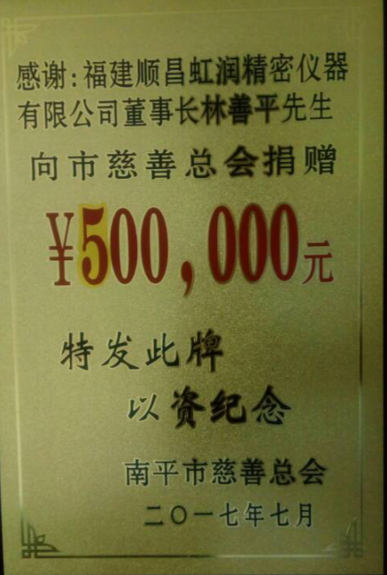 2017年7月28日,南平市慈善捐贈大會暨市慈善總會換屆會議在南平市委舉行,福建順昌虹潤董事長林善平再次當(dāng)選為南平市慈善總會第三屆理事會副會長,這也是林善平董事長第三次當(dāng)選此職。同時,在本次慈善捐贈大會上,他再次向市慈善總會捐款50萬元。他表示,他還將一如既往,繼續(xù)加大對社會公益事業(yè)的支持力度,積極投身公益和慈善事業(yè),為南平市的慈善事業(yè)作出更大的貢獻。目前,林善平董事長各項公益捐款累計已達1000余萬元。