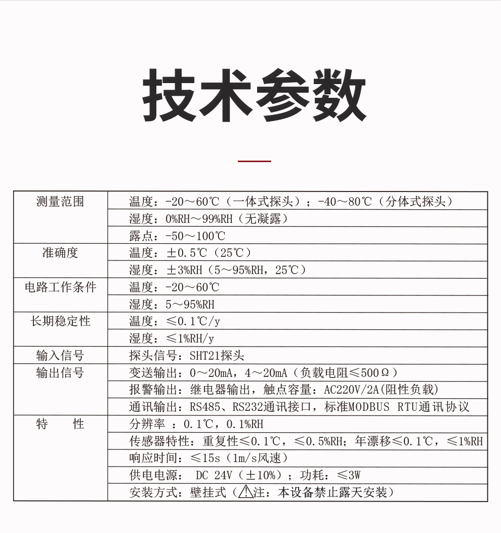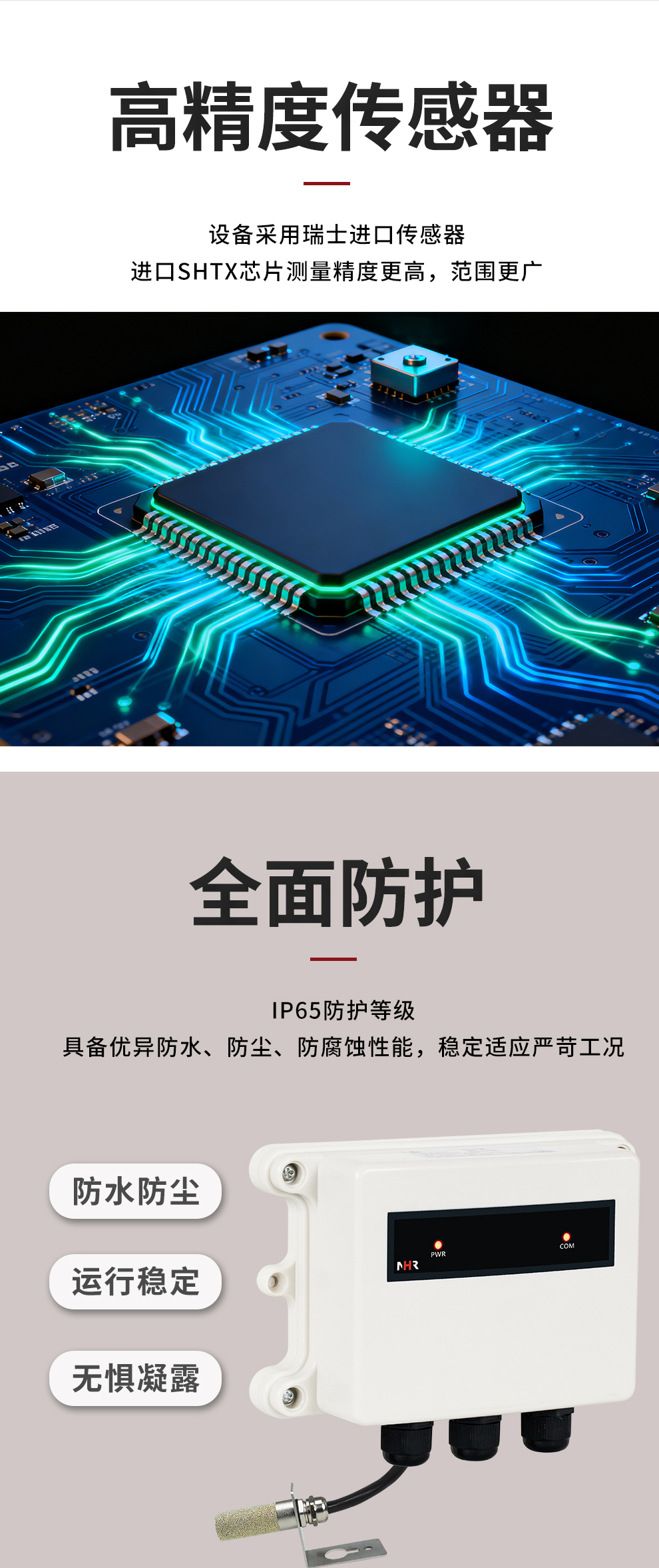 虹潤公司是專業(yè)生產環(huán)境監(jiān)測儀表的國家專精特新“小巨人”企業(yè)。生產的一體式溫濕度變送器,具有溫度、濕度、露點高精準的測量與變送,報警繼電器輸出,RS485/RS232通訊,IP65防護等級等特點。產品獲得一種手持式低功耗溫濕度檢測儀、大屏幕溫濕度記錄儀等2項國家發(fā)明專利,主持起草物聯網智能溫度儀表通用技術條件、冷鏈溫度記錄儀等2項國家標準,以及通信系統(tǒng)多通道數據采集控制終端規(guī)范軍用標準,以及現場設備集成等5項智能制造國家標準,參與國際5G標準制定,取得溫濕度儀表等3項相關軟件著作權。產品廣泛應用于工業(yè)現場、農業(yè)大棚、倉儲物流、地下管廊、養(yǎng)殖孵化、配電機房等諸多領域。