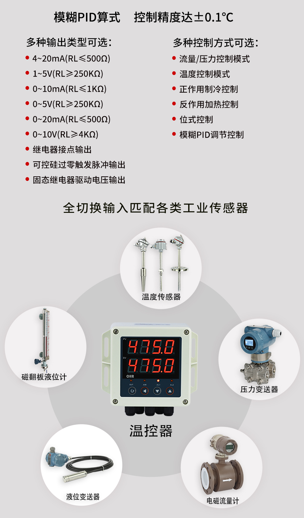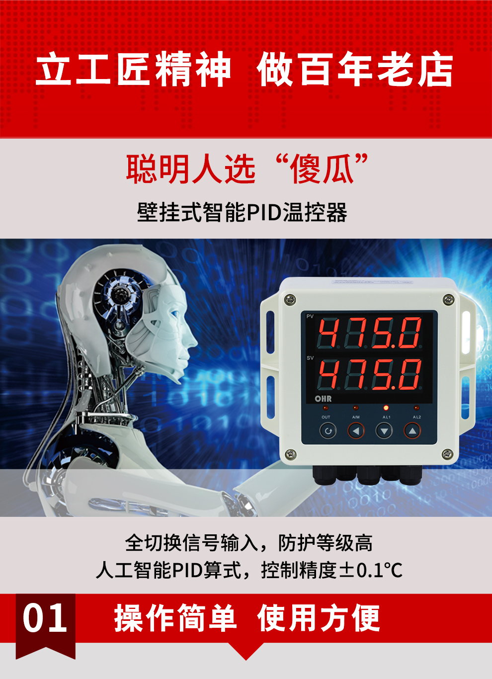 虹潤公司是專業(yè)生產(chǎn)溫控器的國家專精特新“小巨人”企業(yè)。生產(chǎn)的壁掛式PID溫控器,具有全切換信號輸入,真正人工智能算式,控制精度達士0.1°C,防護等級高,RS485通訊輸出等特點。產(chǎn)品獲得模糊PID控制儀及控制方法、人工智能調(diào)節(jié)器、智能化控制器、移相觸發(fā)控制器、閥門自動手動無擾動操作控制方法及裝置等5項國家發(fā)明專利,主持起草主持起草工業(yè)過程控制系統(tǒng)用模擬輸入兩位或多位輸出儀表、物聯(lián)網(wǎng)智能溫度儀表通用技術(shù)條件、工業(yè)過程測量和控制系統(tǒng)用智能調(diào)節(jié)器等3項國家標(biāo)準(zhǔn),以及通信系統(tǒng)多通道數(shù)據(jù)采集控制終端規(guī)范軍用標(biāo)準(zhǔn)。參與國際5G標(biāo)準(zhǔn)制定,取得傻瓜式PID調(diào)節(jié)儀等3項相關(guān)軟件著作權(quán)。產(chǎn)品廣泛應(yīng)用于電力、石化,冶金、制藥、食品等幾乎所有工業(yè)現(xiàn)場,實現(xiàn)精準(zhǔn)控溫,保障生產(chǎn)安全與質(zhì)量。