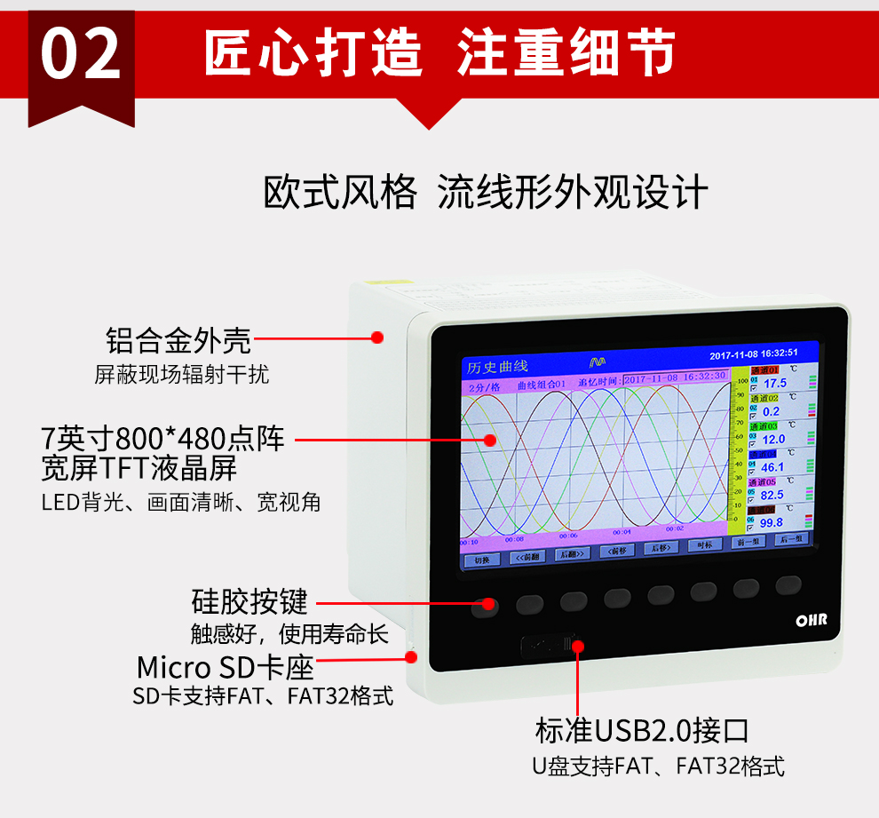 OHR-H700系列多路彩色數據采集無紙記錄儀