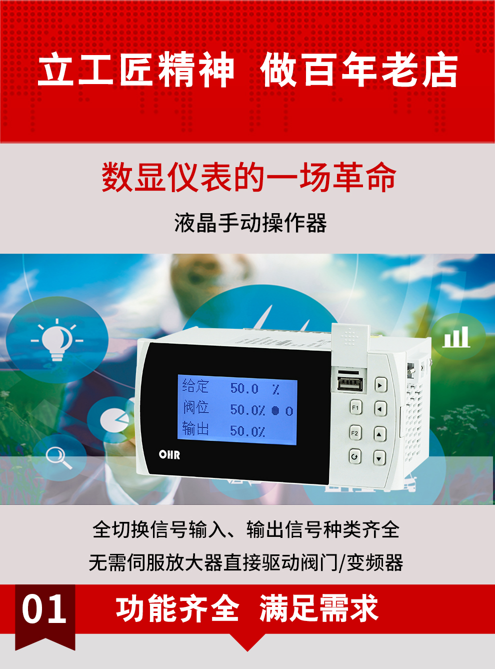 虹潤公司是專業(yè)生產(chǎn)智能手操器的國家專精特新“小巨人”企業(yè),生產(chǎn)的液晶手動操作器,具有全切換信號輸入,通道之間相互隔離,手自動無擾動切換,配上位機管理軟件等特點。產(chǎn)品獲得閥門自動手動無擾動操作控制方法及裝置、模糊PID控制儀及控制方法、移相觸發(fā)控制器等3項國家標(biāo)準(zhǔn),主持起草工業(yè)過程控制系統(tǒng)用模擬輸入兩位或多位輸出儀表、流程工業(yè)中電氣/儀表和控制系統(tǒng)的試車等2項國家標(biāo)準(zhǔn),以及通信系統(tǒng)多通道數(shù)據(jù)采集控制終端規(guī)范軍用標(biāo)準(zhǔn),參與國際5G標(biāo)準(zhǔn)制定,取得手動操作器等3項相關(guān)軟件著作權(quán)。產(chǎn)品廣泛應(yīng)用于電力、石化、冶金、化工、造紙、食品、輕工、制藥、熱處理、水處理、機械配套等各種工業(yè)現(xiàn)場。