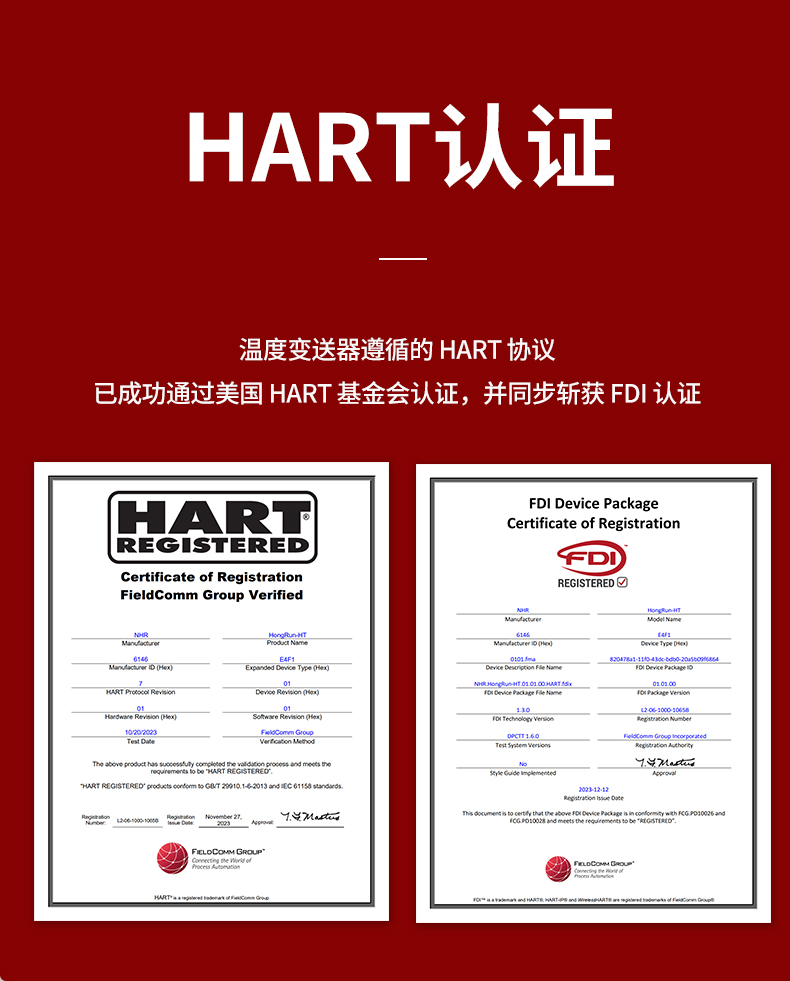 虹潤(rùn)公司是專業(yè)生產(chǎn)溫度變送器的國(guó)家專精特新“小巨人”企業(yè)。生產(chǎn)的智能溫度變送器,具有適配各類溫度傳感器,精度高,通過(guò)編程線修改輸入信號(hào)類型及量程,高抗干擾,HART或485通訊等特點(diǎn)。該產(chǎn)品不僅通過(guò)HART基金會(huì)認(rèn)證、德國(guó)萊茵 CE 認(rèn)證與 SIL 功能安全認(rèn)證,還獲得具備減震抗干擾能力的溫度變送器、信號(hào)隔離器、一種二端子模塊、無(wú)源信號(hào)隔離器等4項(xiàng)國(guó)家發(fā)明專利,主持起草物聯(lián)網(wǎng)智能溫度儀表、現(xiàn)場(chǎng)設(shè)備工具(FDT)接口規(guī)范、工業(yè)過(guò)程測(cè)量和控制系統(tǒng)用溫度變送器等3項(xiàng)國(guó)家標(biāo)準(zhǔn),以及通信系統(tǒng)多通道數(shù)據(jù)采集控制終端規(guī)范軍用標(biāo)準(zhǔn),參與國(guó)際5G標(biāo)準(zhǔn)制定,取得HART溫度變送器、智能溫度變送器等3項(xiàng)相關(guān)軟件著作權(quán)。產(chǎn)品廣泛應(yīng)用于石油、化工、電力、冶金、制藥、食品、水處理等各種工業(yè)領(lǐng)域。