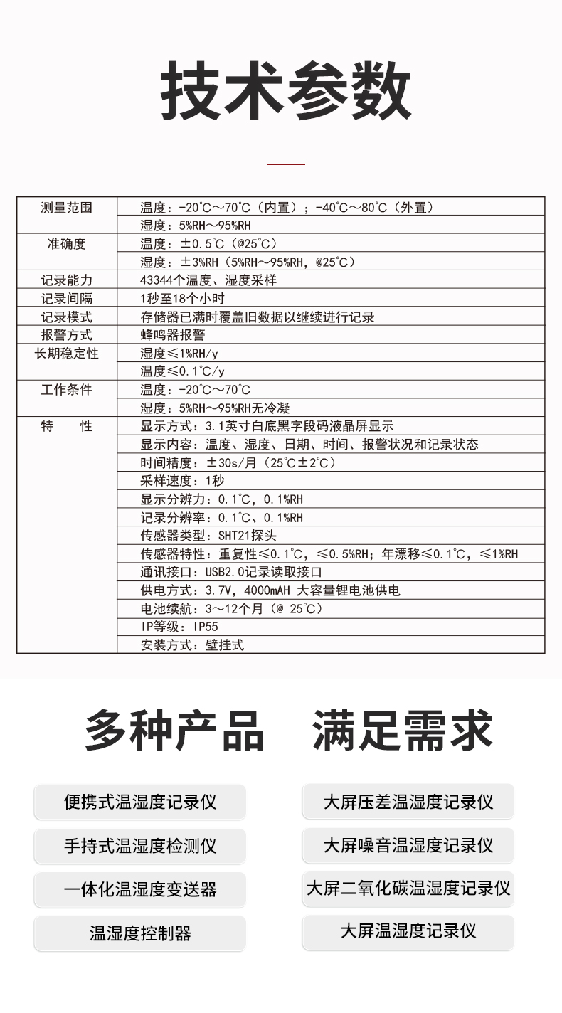 | 環(huán)境監(jiān)測儀表 | 大屏溫濕度記錄儀 溫濕度儀表 環(huán)境參數(shù)變送器 直插式土壤傳感器 |