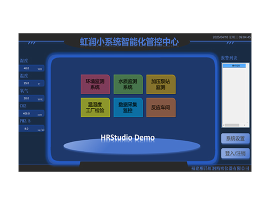 虹潤公司是專業(yè)研發(fā)組態(tài)軟件的國家專精特新“小巨人”企業(yè)。開發(fā)的HRStudio組態(tài)軟件,具有便捷組態(tài)畫面,強(qiáng)大設(shè)備驅(qū)動,多元化的圖庫,數(shù)據(jù)庫操作,內(nèi)置腳本拓展,權(quán)限管理數(shù)據(jù)備份等特點(diǎn)。產(chǎn)品獲得嵌入式數(shù)據(jù)采集工作站組網(wǎng)系統(tǒng)等1項國家發(fā)明專利,主持起草通信系統(tǒng)多通道數(shù)據(jù)采集控制終端規(guī)范軍用標(biāo)準(zhǔn),空間數(shù)據(jù)與信息數(shù)據(jù)傳輸系統(tǒng)等2項航天標(biāo)準(zhǔn),以及現(xiàn)場設(shè)備集成等5項智能制造國家標(biāo)準(zhǔn)。參與國際5G標(biāo)準(zhǔn)制定,取得HRStudio 畫面組態(tài) 等1項相關(guān)軟件著作權(quán)。產(chǎn)品廣泛應(yīng)用于冶金、石化、制藥、設(shè)備配套、環(huán)境監(jiān)測、農(nóng)業(yè)、生產(chǎn)過程控制等諸多領(lǐng)域。