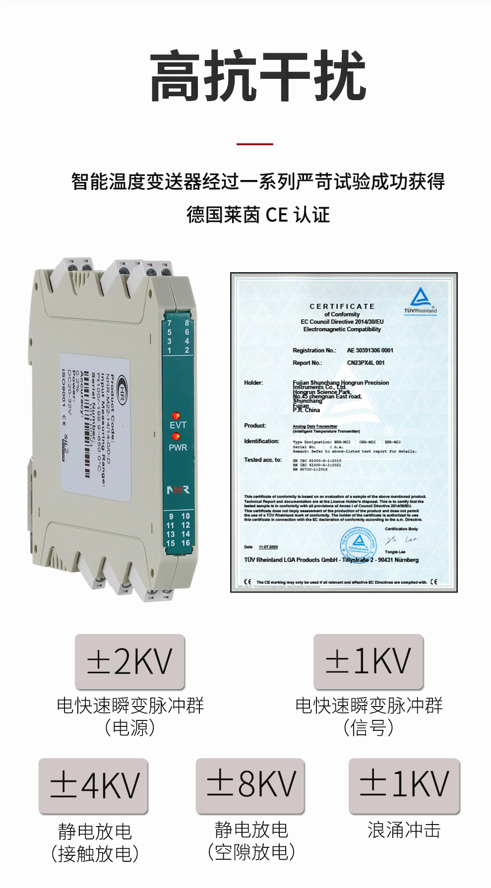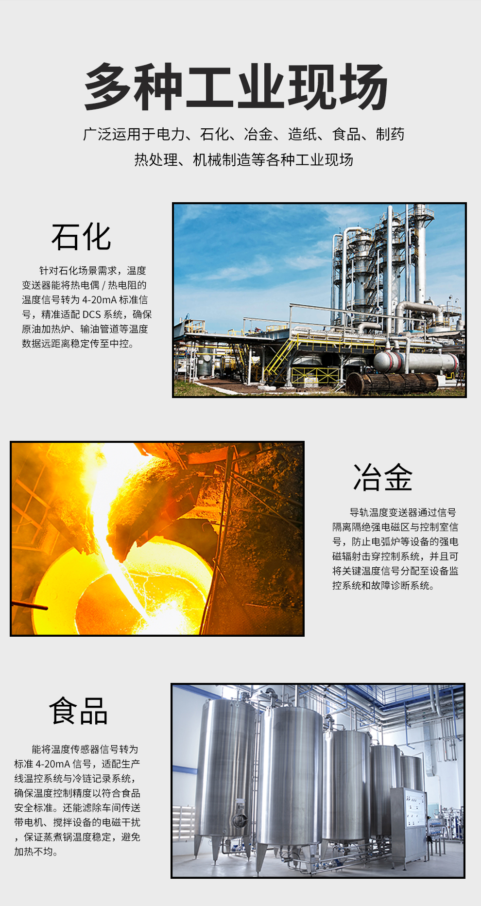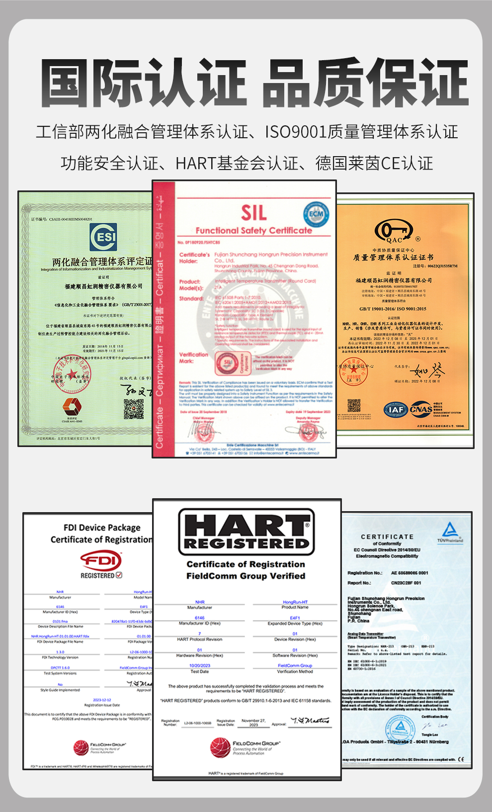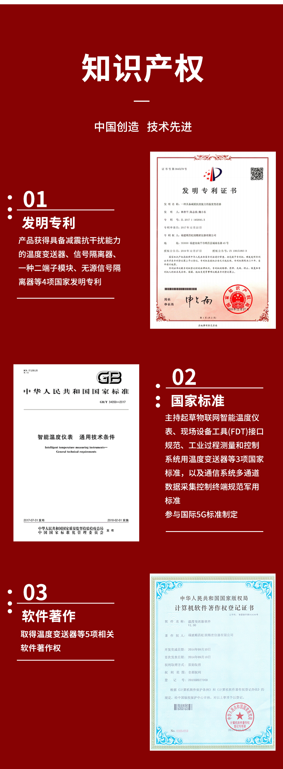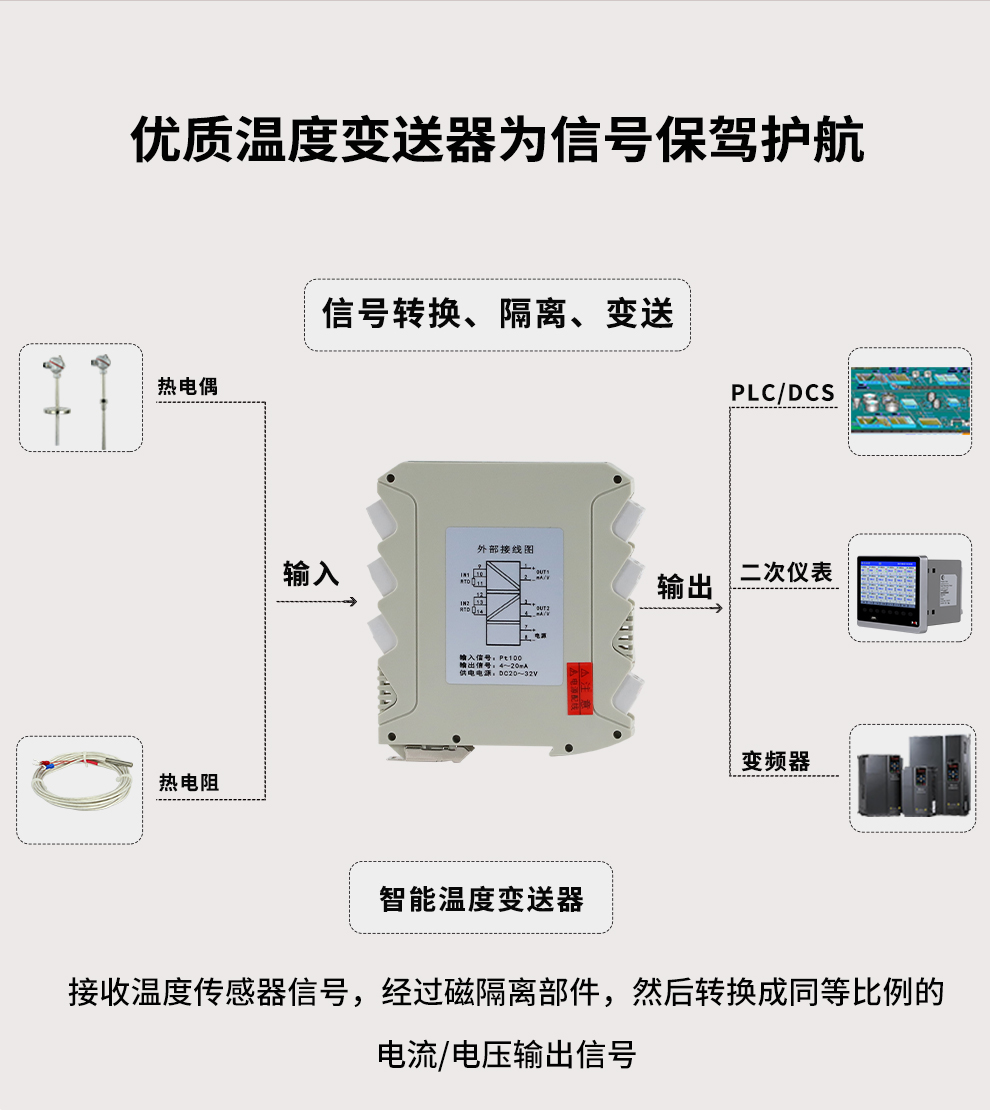 虹潤(rùn)公司是專業(yè)生產(chǎn)溫度變送器的國(guó)家專精特新“小巨人”企業(yè)。生產(chǎn)的溫度變送器,具有采用磁隔離技術(shù),配套編程器可修改參數(shù),抗干擾能力強(qiáng),穩(wěn)定性好,帶RS485或HART通訊等特點(diǎn)。該產(chǎn)品不僅通過(guò)HART基金會(huì)認(rèn)證、德國(guó)萊茵 CE 認(rèn)證與 SIL 功能安全認(rèn)證,還獲得具備減震抗干擾能力的溫度變送器、信號(hào)隔離器、一種二端子模塊、無(wú)源信號(hào)隔離器等4項(xiàng)國(guó)家發(fā)明專利,主持起草物聯(lián)網(wǎng)智能溫度儀表、現(xiàn)場(chǎng)設(shè)備工具(FDT)接口規(guī)范、工業(yè)過(guò)程測(cè)量和控制系統(tǒng)用溫度變送器等3項(xiàng)國(guó)家標(biāo)準(zhǔn),以及通信系統(tǒng)多通道數(shù)據(jù)采集控制終端規(guī)范軍用標(biāo)準(zhǔn),參與國(guó)際5G標(biāo)準(zhǔn)制定,取得溫度變送器等5項(xiàng)相關(guān)軟件著作權(quán)。產(chǎn)品廣泛應(yīng)用于石油、電力、化工,冶金、制藥、紡織、橡膠制造等工業(yè)領(lǐng)域現(xiàn)場(chǎng)自動(dòng)化測(cè)溫過(guò)程。