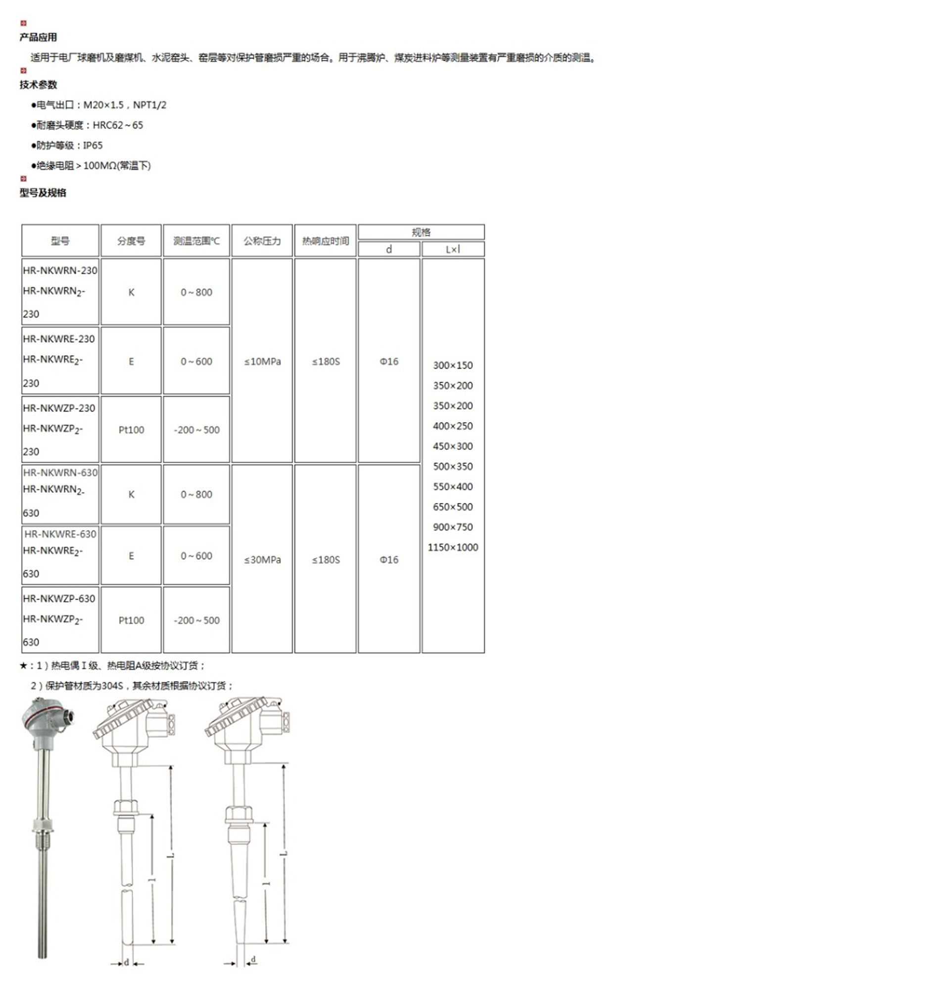耐磨熱電偶(阻)采用等離子噴漆技術(shù)、高鉻鑄鐵和高溫合金不同材料制成的耐磨保護(hù)管,專門為高、中、低溫耐磨環(huán)境的測量場合設(shè)計制造的,可適用于循環(huán)流化床、沸騰爐、水泥回轉(zhuǎn)窯尾煙室