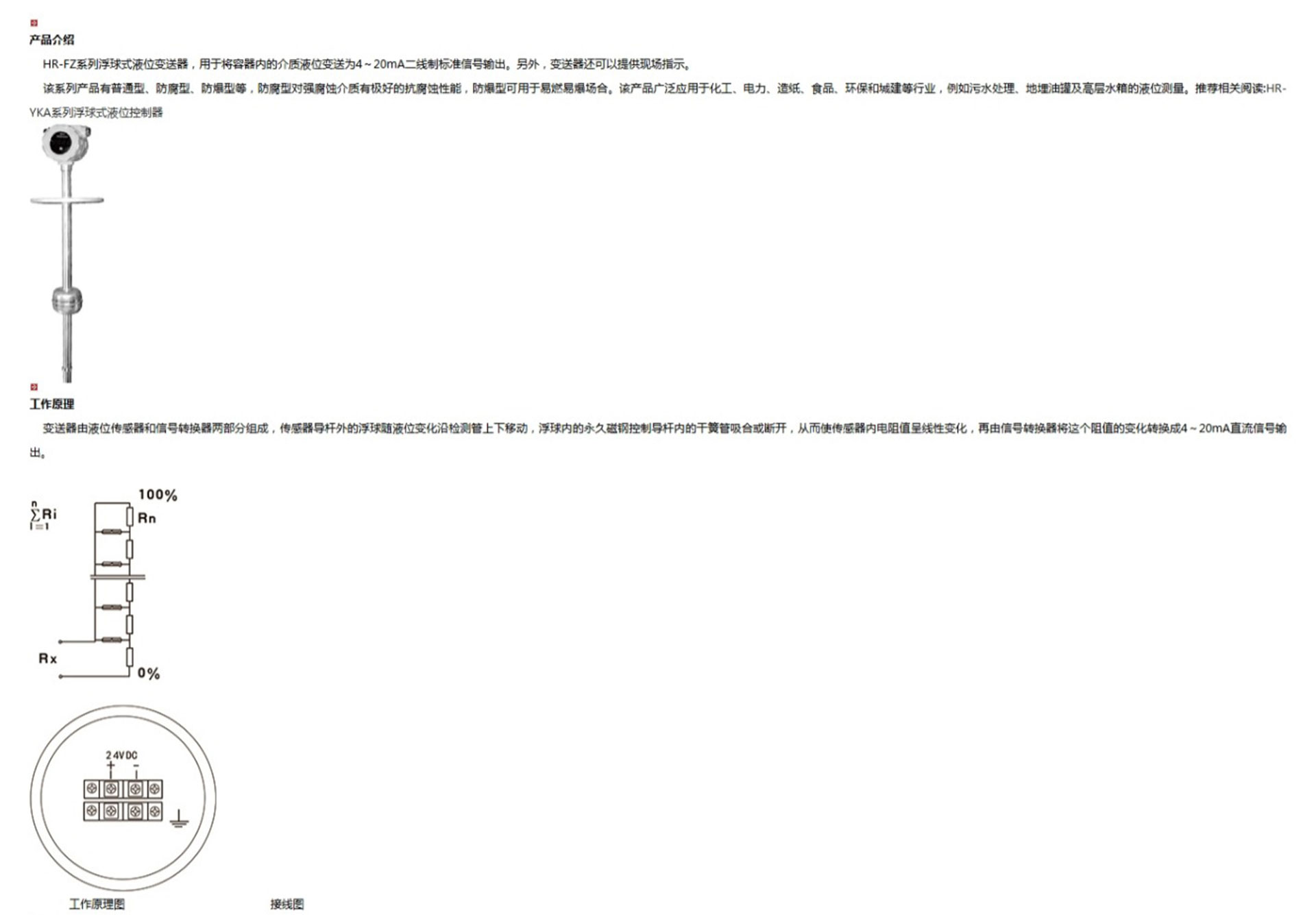 HR-FZ系列浮球式液位變送器
