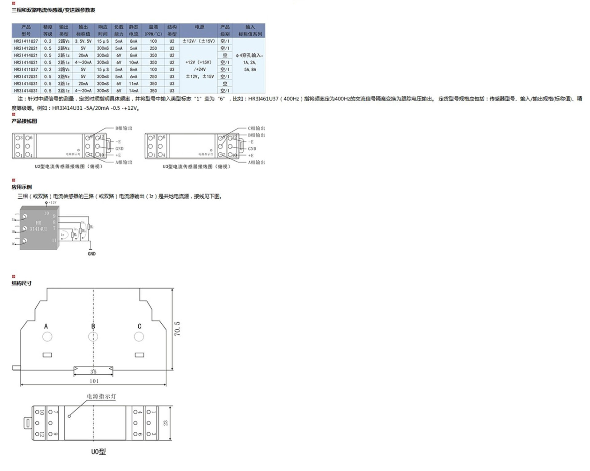 三相電流和雙路電流傳感器/變送器是組合電流互感器、電流變送器于一體的新一代交流電流變送器,它可以直接將三相交流電流轉(zhuǎn)換成按線性比例輸出的DC4~20mA(通過250Ω 電阻轉(zhuǎn)換DC 1~5V或通過500Ω電阻 轉(zhuǎn)換DC2~10V)恒流環(huán)標(biāo)準(zhǔn)信號,連續(xù)輸送到接收裝置(計(jì)算機(jī)或顯示儀表)。