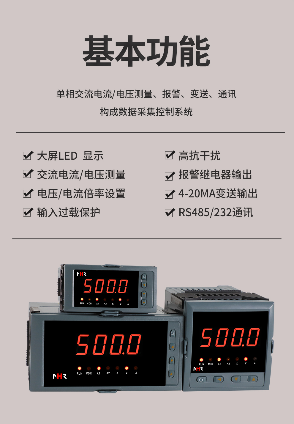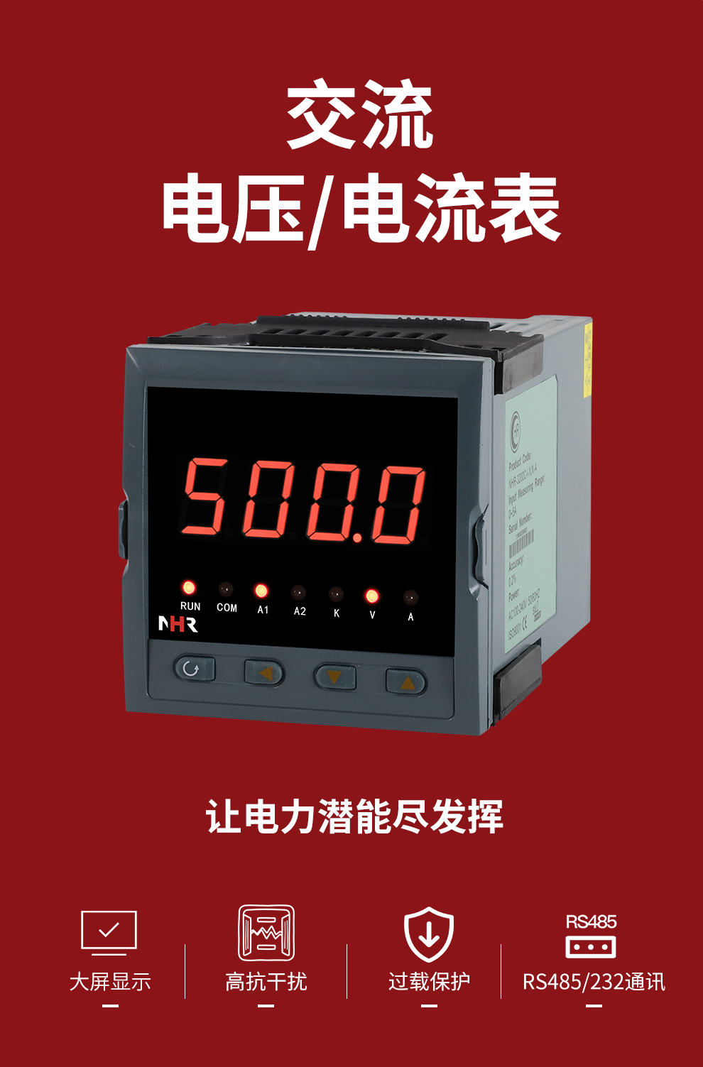 虹潤公司是專業(yè)生產(chǎn)數(shù)字電壓表的國家專精特新“小巨人”企業(yè),生產(chǎn)的交流電壓/電流表,具有大屏LED顯示,電流電壓倍率設(shè)置,高抗干擾,輸出過載保護,RS485/RS232通訊等特點。產(chǎn)品獲得一種交流信號變送器、交直流信號轉(zhuǎn)換電路、基于DCS技術(shù)的盤裝式三相電量表等3項國家發(fā)明專利,主持起草工業(yè)過程控制系統(tǒng)用模擬輸入兩位或多位輸出儀表國家標(biāo)準(zhǔn),直流漏電流傳感器規(guī)范、通信系統(tǒng)多通道數(shù)據(jù)采集控制終端規(guī)范等2項軍用標(biāo)準(zhǔn),以及現(xiàn)場設(shè)備集成等5項智能制造國家標(biāo)準(zhǔn),參與國際5G標(biāo)準(zhǔn)制定。取得單相電量儀表等2項相關(guān)軟件著作權(quán)。產(chǎn)品廣泛應(yīng)用于工業(yè)制造、建筑地產(chǎn)、機電設(shè)備、能源電力、市政設(shè)施 、數(shù)據(jù)中心與通信等諸多領(lǐng)域。