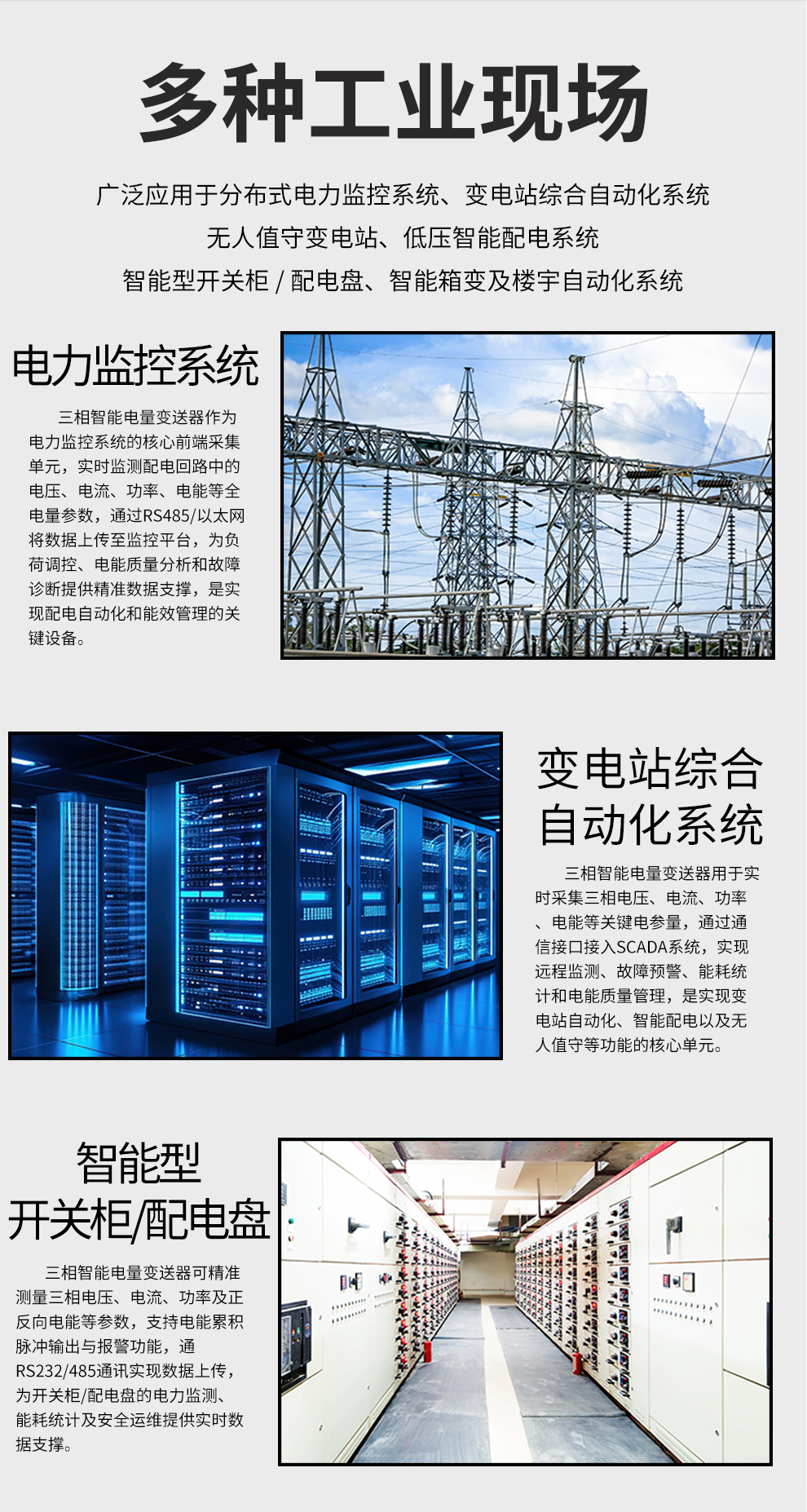 虹潤公司是專業(yè)生產(chǎn)電流傳感器的國家專精特新“小巨人”企業(yè)。生產(chǎn)的三相智能電量變送器,具有多種電參數(shù)測量,正反向電能累積,多種輸出信號,導(dǎo)軌壁掛共用, RS485/RS232通訊等特點(diǎn)。產(chǎn)品獲得基于一種交流信號變送器、交直流信號轉(zhuǎn)換電路、基于DCS技術(shù)的盤裝式三相電量表等3項國家發(fā)明專利,主持起草工業(yè)過程控制系統(tǒng)用模擬輸入兩位或多位輸出儀表國家標(biāo)準(zhǔn),直流漏電流傳感器規(guī)范、通信系統(tǒng)多通道數(shù)據(jù)采集控制終端規(guī)范等2項軍用標(biāo)準(zhǔn),以及現(xiàn)場設(shè)備集成等5項智能制造國家標(biāo)準(zhǔn),參與國際5G標(biāo)準(zhǔn)制定,取得液晶綜合電量集中顯示儀等2項相關(guān)軟件著作權(quán)。產(chǎn)品廣泛應(yīng)用于電力、冶金、化工、水泥、造紙、新能源、基礎(chǔ)設(shè)施等用電密集行業(yè)。